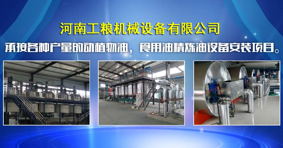 河南工糧公司生產的動物油加工設備外型美觀,工藝先進,整機結構緊湊,操作維修方便,安裝時間短。售后服務及時等諸多優點,均能達到國家執行標準要求。